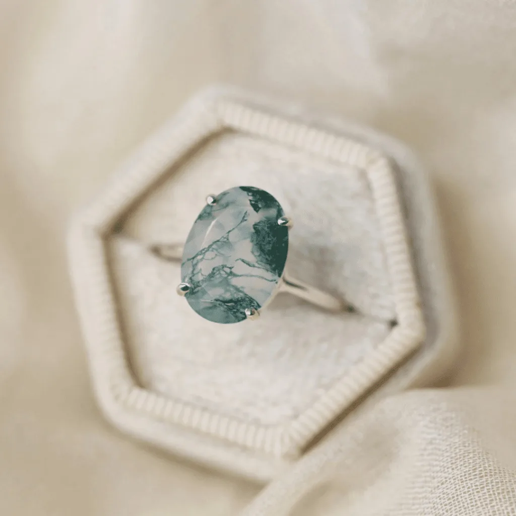 3. Nature’s Timelessness: Moss Agate’s connection to nature underscores the enduring qualities of love. Like the timeless beauty of a forest, the love represented by a Moss Agate engagement ring is expected to stand the test of time.